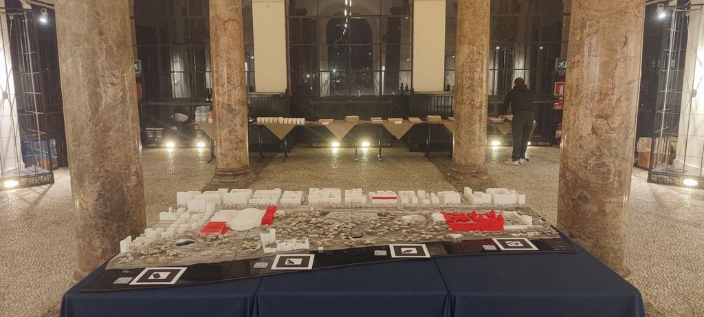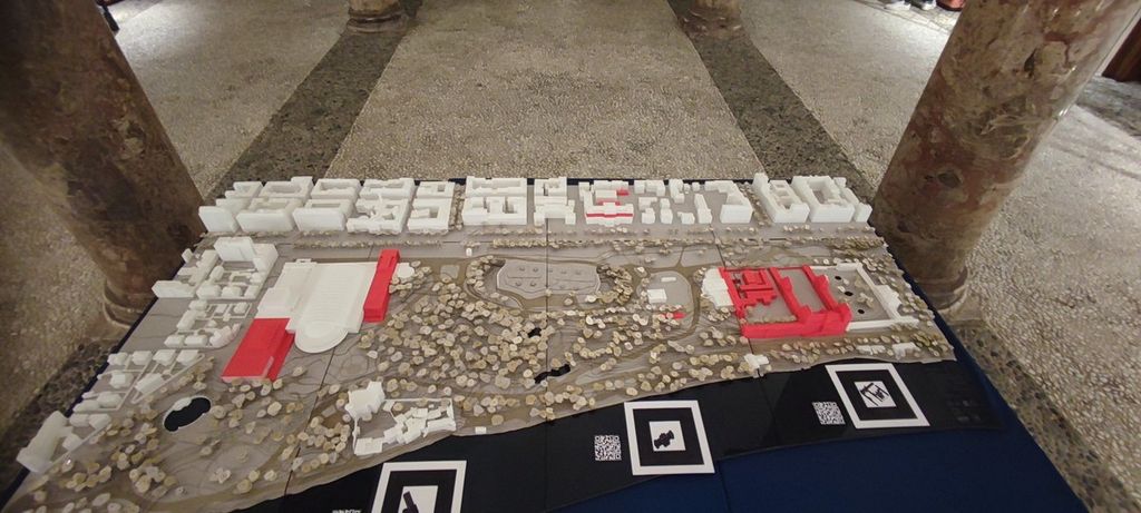 Il plastico del progetto - 1,37 per 2,27 metri e in scala 1:500 - è esplorabile grazie alla realtà aumentata: da smartphone - senza dover scaricare app - è possibile leggere i QR code che attivano l'esperienza e rimandano a un percorso per tappe che informa sui punti chiave della trasformazione del Campus Valentino.