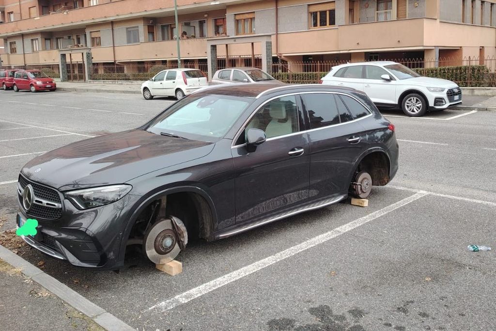 I malviventi hanno portato via tutti e 4 i pneumatici, cerchioni e copriruote