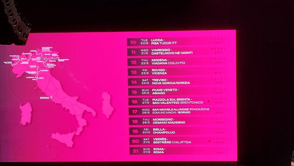 All’Auditorium Parco della Musica Ennio Morricone di Roma è stato presentato il percorso del 108° Giro d’Italia, in programma dal 9 maggio al 1 giugno, e del Giro d’Italia Women, che si svolgerà dal 6 al 13 luglio.
