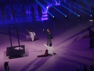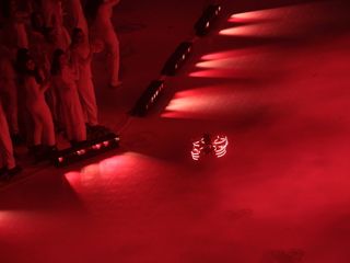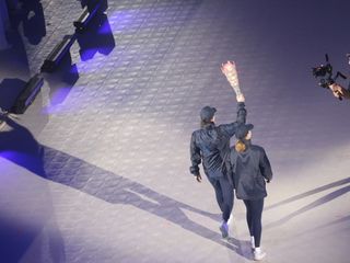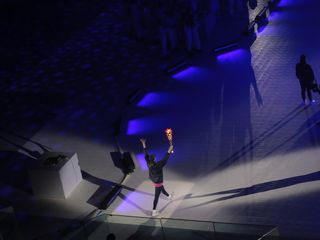 E infine il piccolo Giorgio che magicamente si trasforma in adulto. Come per magia appare Giorgio Chiellini, ex capitano azzurro. È lui ad accendere i Giochi con la fiaccola “Guarini”, realizzata dagli studenti del Politecnico, arrivata al Pala Inalpi con Carolina Kostner, poi passata a Carlotta Gilli e a Stefania Belmondo.