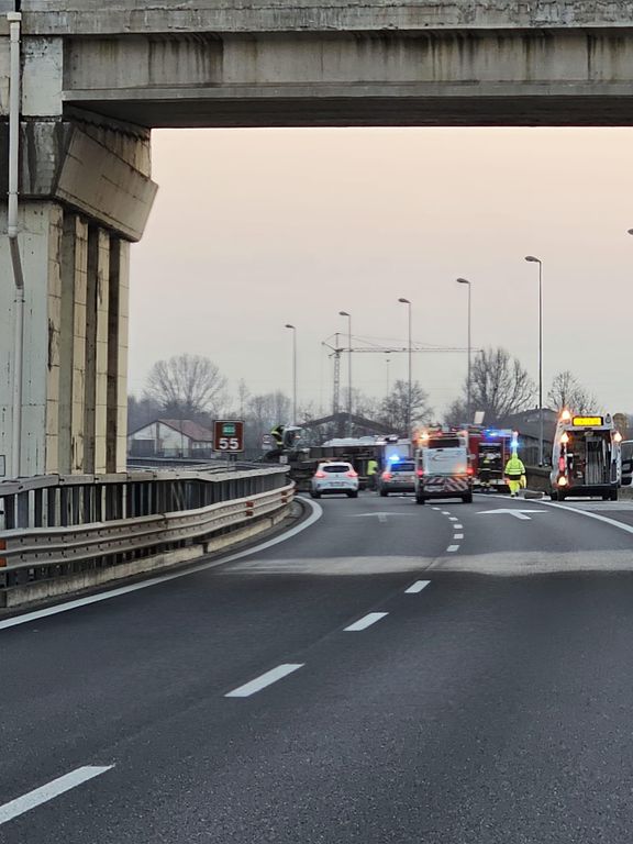 Brutto incidente, per fortuna senza conseguenze per le persone, all'altezza di Volvera, sul raccordo Torino-Pinerolo.