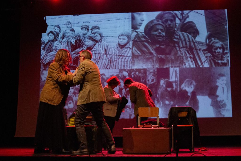 Gli attori sono prima cronisti, poi nazisti aguzzini, ebrei deportati, fino a restare imprigionati nelle storie che documentano. Termineranno il loro viaggio sulla banchina di Auschwitz e con un salto temporale si ritroveranno nel campo di sterminio pronti ad entrare all’inferno.