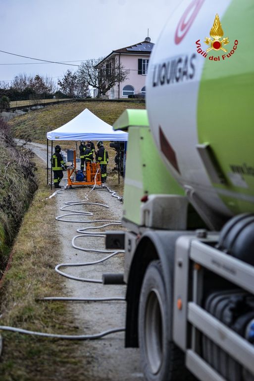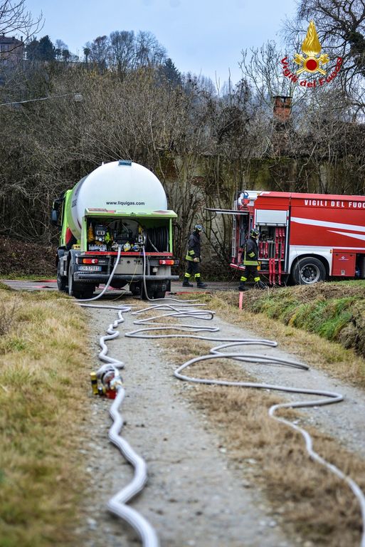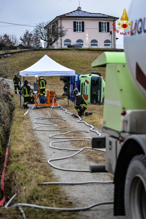 Nella serata di ieri i vigili del fuoco sono intervenuti nel Comune di Casalborgone dove un camion cisterna contenente 8000 litri di gpl si è ribaltato su un fianco oltre il tracciato della strada.