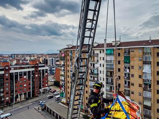 Intervento prezioso, da parte dei vigili del fuoco di Torino, per permettere a una persona di essere portata in ospedale. Un trasporto che si è rivelato particolarmente complesso, visto che il paziente non poteva passare dal vano delle scale.