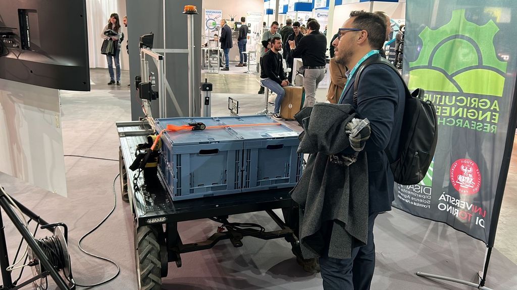 Il Dipartimento di Scienze agrarie dell'Università di Torino presenta invece il progetto Divine, che risale al 2024: si tratta di un rover agricolo che è nato come mezzo per movimentare alcuni carichi in vigneto, mentre ora si dedica ad attività più sofisticate. Totalmente a trazione elettrica e a guida autonoma, "grazie al suo sistema di ripresa riesce a rilevare lo stato di salute delle piante intorno a sé: con la lente normale, ma anche con strumentazioni spettrali. Per evitare che il variare della luce possa incidere, abbiamo elaborato un sistema con fari per il suo utilizzo esclusivamente notturno, così da avere una luminosità costante".
