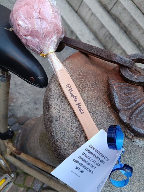 In giro per la città trovate alcune spugne per lavarsi la schiena legate al rapper torinese Mantra Musa e il suo singolo Nettuno