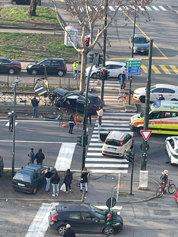Brutto incidente in piazza San Gabriele da Gorizia: un'auto finisce sui binari del tram