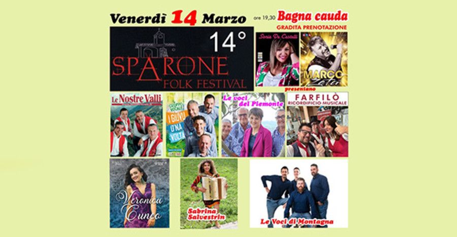 La 14a edizione dello Sparone Folk Festival si inserisce in una serie di eventi in programma dall'8 al 22 marzo, che vedranno sul palco anche tre tra le più importanti orchestre di musica da ballo, Omar Codazzi (mercoledì 12), Marianna Lanteri (sabato 15) e Federica Cocco (sabato 22).
