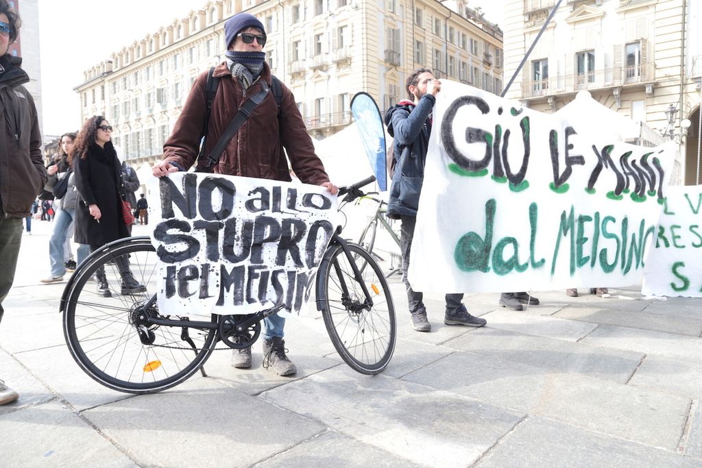 "Giù le mani del Meisino": ambientalisti protestano durante l'inaugurazione di Just the Woman. Contestato Carretta [FOTO e VIDEO]