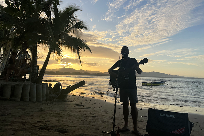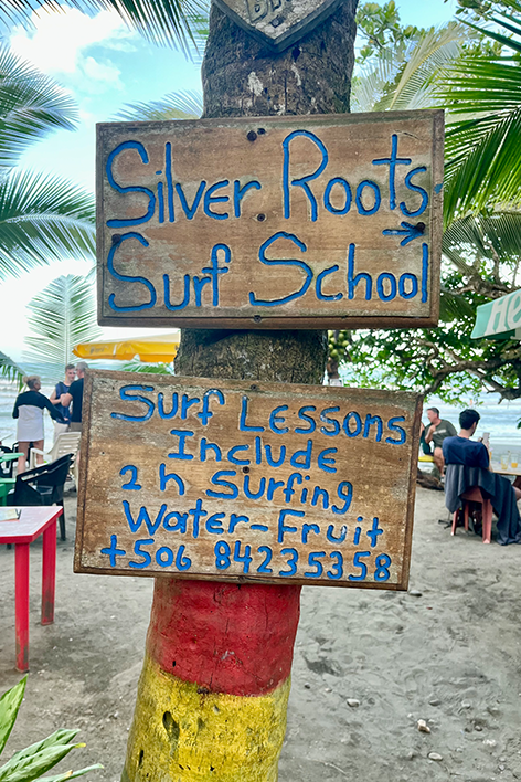 Il giorno successivo a pochi chilometri ci aspettava Puerto Viejo de Talamanca, il cuore pulsante dei Caraibi costaricani. Il paesaggio è cambiato rapidamente: la giungla ha lasciato spazio alle palme e le strade polverose ci hanno accolti con piccoli bar dal sapore bohémien. Puerto Viejo è un crocevia affascinante, dove la cultura afro-caraibica si fonde con lo spirito libero dei surfisti e l’energia dei viaggiatori di passaggio. Abbiamo trascorso una giornata perfetta: mercatini colorati, musica dal vivo e bagni al tramonto a Punta Uva. Da non dimenticare una cena memorabile a base di Rondòn, la zuppa creola di pesce e cocco tipica di questa Terra. Le stradine di terra, fiancheggiate dalle casette di legno dai colori brillanti anche la sera, ci hanno fatto sentire parte di questo mondo semplice ed autentico. Infine, siamo arrivati a Manzanillo, quasi al confine con Panama, dove la giungla si tuffa letteralmente nell’oceano. Qui, tra pescatori locali, palme altissime e una pace irreale, mi sono fermato un momento a riflettere, grato per quello che questo viaggio mi aveva regalato.