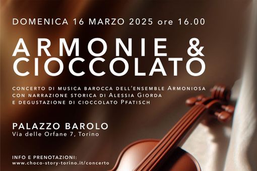 C’è un’arte che incanta l’udito e un’altra che seduce il palato: dalla fortunata collaborazione tra il Museo del Cioccolato e del Gianduja e l’Opera Barolo, nasce l’evento che associa la musica eseguita dall’ensemble Armoniosa di Asti ai racconti sulla storia del cioccolato narrati da Alessia Giorda e alle degustazioni di cioccolato della storica pasticceria Pfatisch.