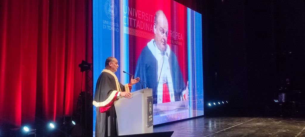 L'anno accademico dell'Università di Torino è ufficialmente iniziato, con la lunga cerimonia al Teatro Regio, l'ultima del rettore Stefano Geuna che lascerà l'incarico nel 2025. Le proteste degli studenti e dei docenti precari hanno movimentato la mattinata, che si è conclusa con l'intervento - e la contestazione - dell'ospite d'onore Enrico Letta, ex presidente del Consiglio ed ex segretario del PD ( ). Al centro degli interventi c'è stata l'Europa, con Unito che punta sempre più alla propria internazionalizzazione mentre all'esterno infuria il dibattito sul progetto di riarmo e sul ruolo del vecchio continente nei conflitti in corso.
