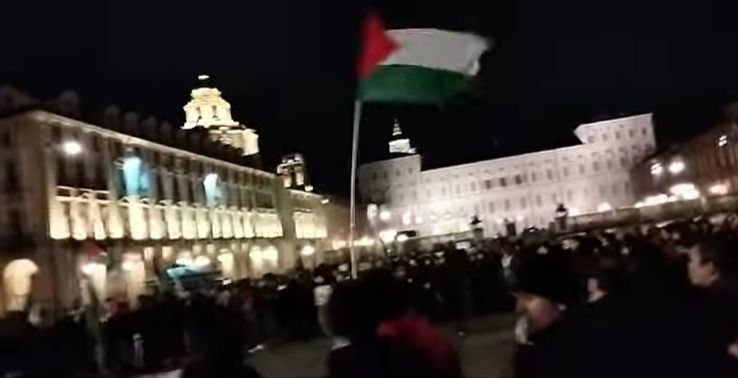 Gli attivisti si sono ritrovai in piazza Castello dopo gli attacchi alla striscia di Gaza