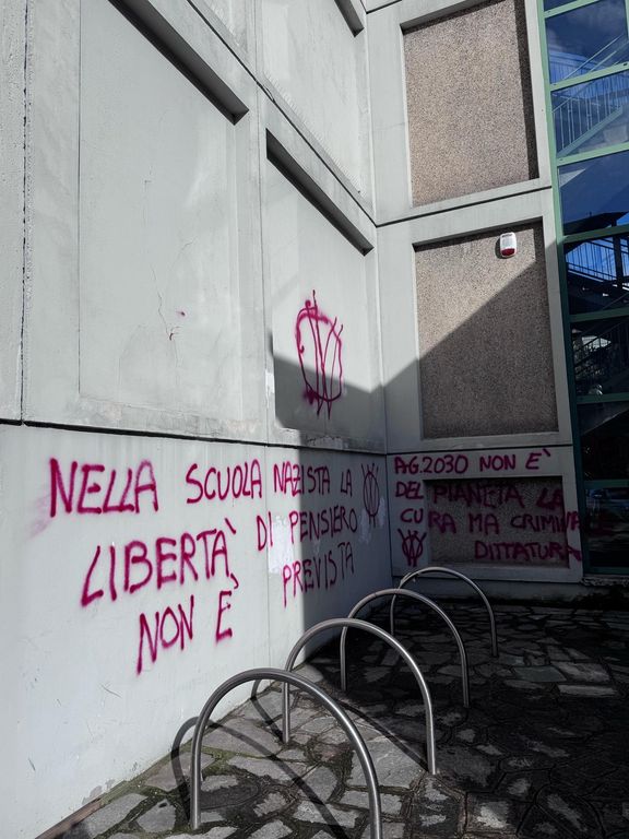 Questa mattina, 24 marzo 2025, la scuola superiore Ettore Majorana di via Frattini, Mirafiori Nord, è stata imbrattata con scritte anarchiche e no vax, attaccando l’Agenda 2030 e negando il cambiamento climatico. Un atto vandalico che colpisce un luogo di formazione, di confronto e di crescita, trasformandolo in un palcoscenico per slogan che negano la scienza e alimentano il complottismo.