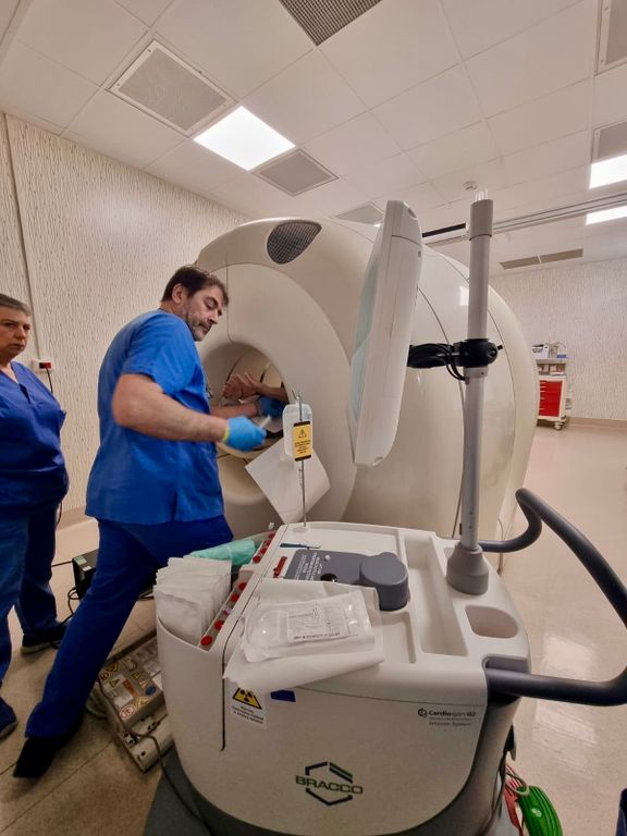 L’esame si svolge utilizzando una PET (Tomografia a Emissione di Positroni) e un radiofarmaco, somministrato tramite iniezione endovenosa. Il farmaco, denominato CardioGen, contiene Rubidio-82, un isotopo radioattivo che ha una vita breve, dimezzando la sua radioattività in appena 75 secondi. Questo consente ai pazienti di non accumulare radiazioni e di tornare subito alle loro normali attività senza alcun rischio. L’esame, che viene effettuato sia a riposo che sotto sforzo, permette di ottenere immagini di alta qualità, fondamentali per valutare il flusso sanguigno coronarico, un aspetto cruciale nella pianificazione del trattamento.