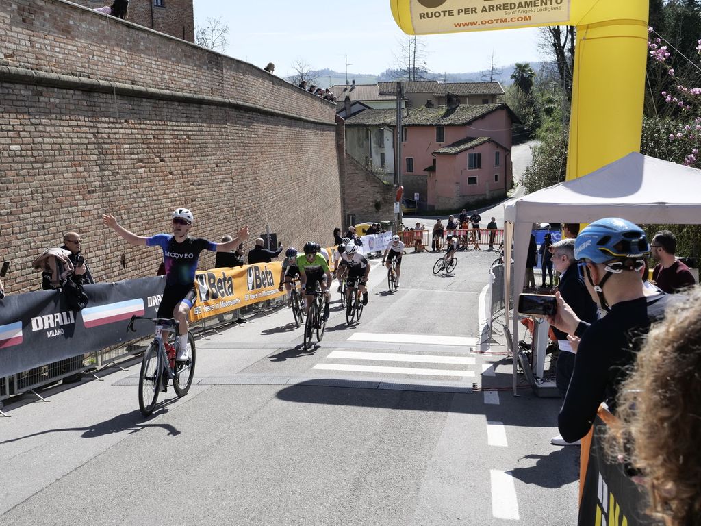 Dopo un tratto ondulato fino a Santa Maria della Versa, il gruppo ha affrontato la salita verso Torrone e poi fino a Pizzofreddo, per poi ridiscendere in Valle Versa, passando per Golferenzo. Dopo la salita verso Pometo, i ciclisti hanno raggiunto il Bivio Carmine, sede del primo ristoro e del rilevamento cronometrico, con un terzetto di testa formato da Davide Pantano, Gabriele Contorni e Nicolò Tamussi.