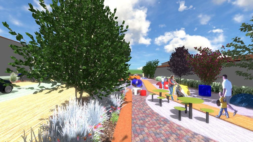 Con l'attuale progetto verrà rimosso l'asfalto e sostituito con materiali in grado di riflettere i raggi solari. Verranno poi realizzate aree verdi e garantito l’ombreggiamento con la piantumazione di 100 nuovi alberi. È prevista la realizzazione di un nuovo sistema di drenaggio delle piogge, in modo da evitare che le acque fluiscano verso gli edifici esistenti.
