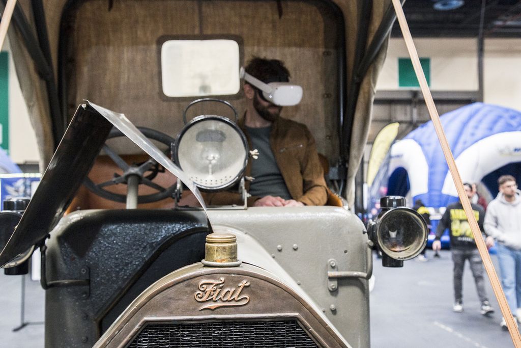 Ci sono i mezzi militari Fiat usati nella prima Guerra Mondiale. Gli pneumatici sono ancora quelli originali, logorati dal tempo. Ci si può salire sopra con un visore e fare un tuffo all'indietro di un secolo, quando la tecnologia dell'automotive si adattava a tempi bui.