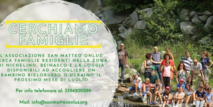 L'appello arriva direttamente dal presidente Silvio Tomasini: “Cerchiamo persone disponibili ad accogliere un bambino nel prossimo mese di luglio”. Il responsabile dell’associazione San Matteo Onlus di Nichelino lancia un invito alle famiglie della cintura sud di Torino per dire sì al progetto per ospitare i ragazzini bielorussi esposti alle conseguenze della tragedia di Chernobyl.