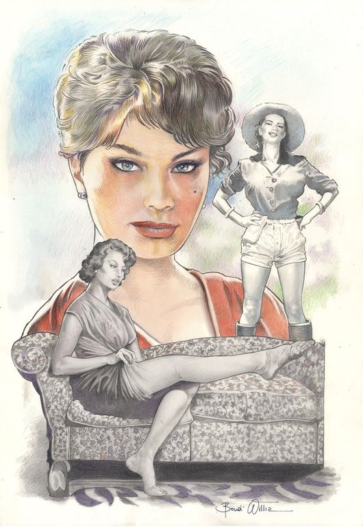 Stiamo parlando di un vero e autentico maestro nel disegnare pin up, donne che hanno reso piacevoli i sogni di tanti signori di ieri, ma anche di adesso. Ispirazioni e suggestioni che animano il moderno graphic novel, di cui è abile interprete grazie ai suoi Artbook. Si potrebbe aprire una parentesi grandissima sulle modelle che hanno posato come pin up, da Bettie Page con il suo ruvido allure alla più dolce Betty Grable fino alle regine del burlesque Tempest Storm e Gipsy Lee Rose. Ma questa è un’altra storia.