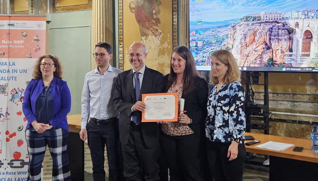 Nel pomeriggio di ieri, lunedì 28 aprile, presso l’ospedale Santa Croce di Moncalieri son state premiate le Aziende che hanno aderito alla rete WHP Piemonte, che hanno posto in essere durante il 2024 interventi di salute in diversi ambiti: la Terra.con di Carmagnola ha posto l’accento sulla corretta alimentazione con l’introduzione di alimenti per celiaci e a basso contenuto di zuccheri nel distributore in azienda e con menù stagionali e ricchi di frutta e verdura per le trasferte e ha promosso le pause attive per i dipendenti e organizzato incontri per la presentazione del percorso di disassuefazione dal fumo di sigarette con Centro Antifumo ASLTO5; l’Italdesign Giugiaro spa di Moncalieri ha realizzato un corso di fitwalking e una serie di incontri sulle tematiche del benessere psico-fisico. L’azienda ha inoltre realizzato, con la collaborazione dell'associazione "Amici del cuore", uno screening cardiologico per prevenire le malattie cardio-vascolari.