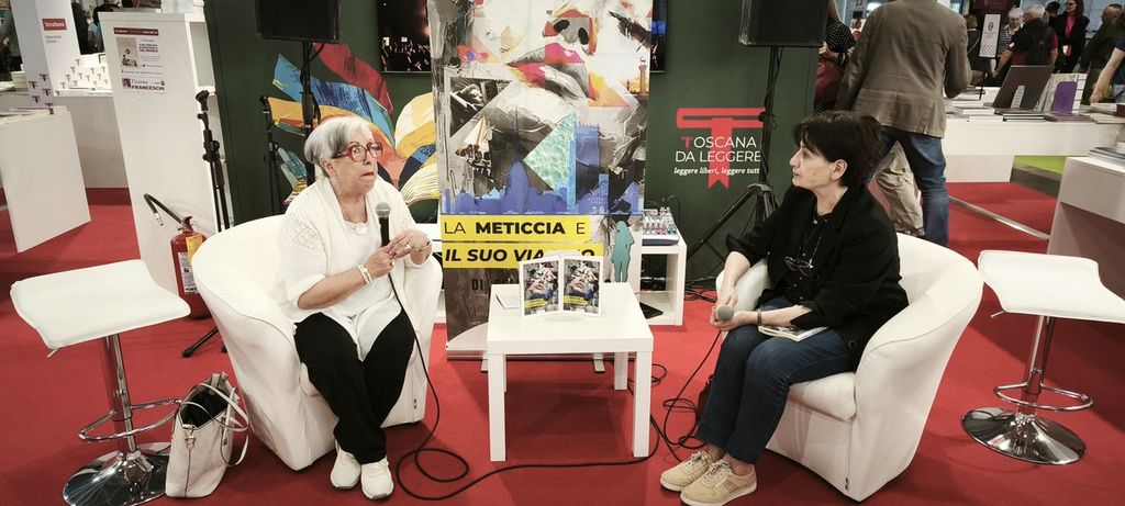 C'è la sagoma della Mole al Salone del Libro di Torino, e fin qui tutto normale. La cosa strana è che è allo stand della Regione Toscana, disegnata su un banner durante la presentazione di un libro. Il libro si intitola "La meticcia e il suo viaggio", dell'autrice grossetana Celeste Pernisco. Ma nel libro si parla anche molto di Torino, dove Celeste ha vissuto e insegnato. L'opera è infatti una sorta di autobiografia - ma non solo - pubblicata un anno fa dall'editore toscano Innocenti, dove è presente la Torino degli anni '70 con i suoi movimenti operai e l'immigrazione dal sud Italia. Questi due temi intersecano poi la pedagogia, argomento preponderante nel libro e nella vita dell'autrice.