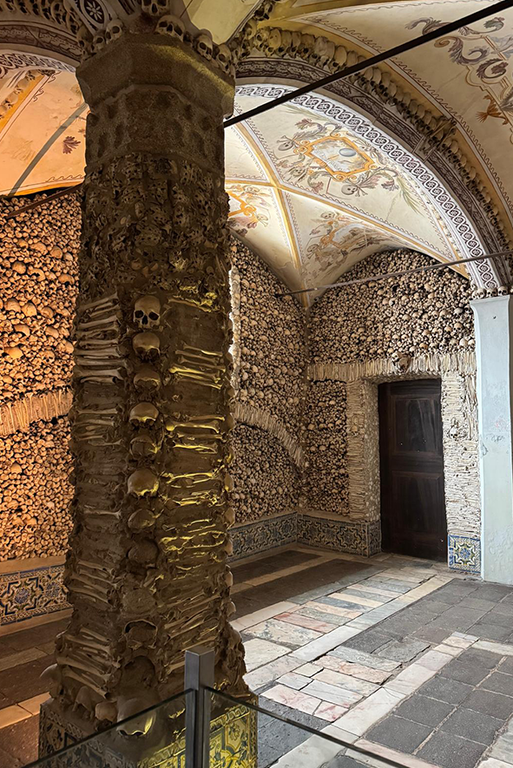 Siamo andati a Évora, nell’Alentejo, dove abbiamo visitato la Capela dos Ossos: un luogo potente, con le colonne ricoperte di ossa umane. Una testimonianza di un passato segnato da epidemie e carestie. Poi l’Algarve, con le sue scogliere spettacolari. A Ponta da Piedade ci siamo trovati davanti a uno scenario selvaggio, dove la natura si è imposta in tutta la sua forza. Il mare, lì, non è stato solo bellezza: è stato forza primitiva.