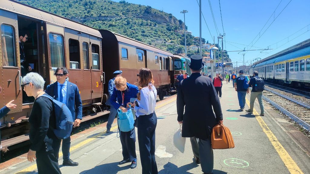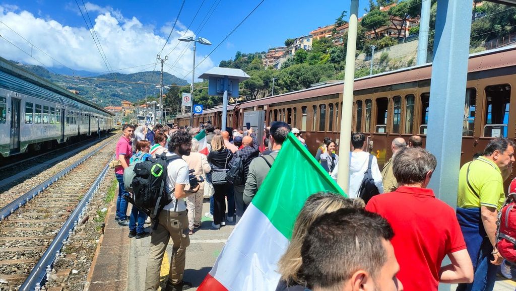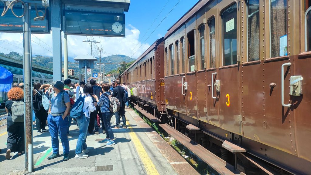 L’arrivo a Ventimiglia alle 12:55 è stato un momento di festa: i viaggiatori sono stati accolti da figuranti dell’Ente Agosto Medievale, da un punto informativo del Comune e dall’Orchestra Filarmonica Giovanile Città di Ventimiglia. Dopo la pausa per il pranzo, inizia il viaggio di ritorno del convoglio, che si concluderà con l'arrivo a Torino alle 19.