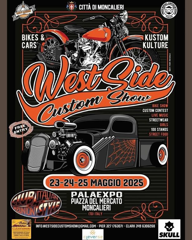 Tutto pronto per una tre giorni ad alto tasso di motori, stile e passione. Da venerdì 23 a domenica 25 maggio, il Palaexpo di Moncalieri ospita una nuova edizione del West Side Custom Show, l’evento di riferimento per gli amanti del mondo custom, tra moto d’epoca, auto modificate, test drive e una carrellata di iniziative pensate per grandi e piccoli.