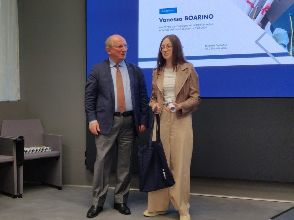I due studenti premiati con la borsa di studio istituita dall’Associazione “Amici di Cecilia”, in ricordo di Nicoletta Appendino e Monica De Michele, colleghe scomparse nel 2008 in seguito a un incidente stradale, sono stati Elisa Racca, classe 5ª D, e Luca Rinaldi, classe 5ª B dell’Istituto Superiore "E. Guala" di Bra.