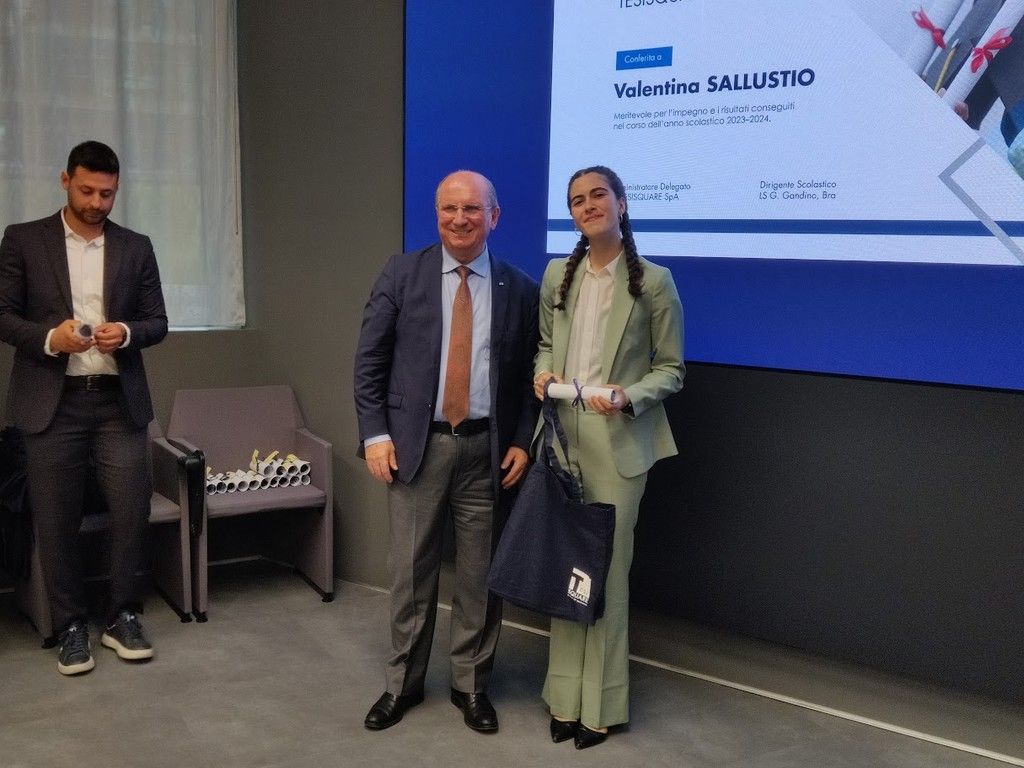 Le borse TESISQUARE sono andate a: Paolo Bertini classe 5L ISS E.Guala Bra, Valentina Sallustio classe 5C LS G. Gandino di Bra, Samuele Bernardi classe 5E, Riccardo Patetta classe 5D, Giacomo Isoardi classe 5A dell'IIS G. Vallauri di Fossano, Mauro Carleo classe 5D del LSS L. Cocito di Alba, Vanessa Boarino classe 5I dell'IIS L. Einaudi di Alba, Chen Lihua classe 5L dell'ISS Denina Pellico Rivoira di Saluzzo, Alex Pellegrino classe 5B, Leonardo Pollicino classe 5°, Francesco Re classe 5B dell'ITIS Delpozzo di Cuneo, Vittorio Bussano classe 5E, Emanuele Andy Galliano, classe 5D, Divya Inches, classe 5A (serale), Giacomo Peretti classe 5F, Gabriel Rubjeka classe 5°, Giovanni Pio Testa classe 5B dell'ITIS Pininfarina di Moncalieri e Lorenzo Luciano Sasso classe 5A dell'IIS JC. Maxwell di Nichelino.