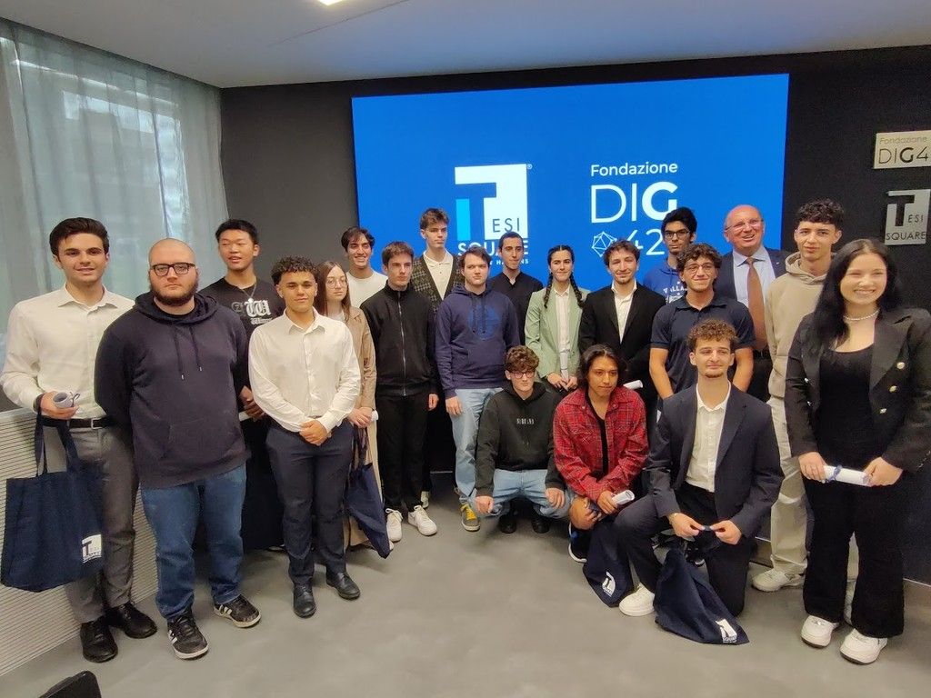 In un luogo simbolo dell'innovazione digitale è stato proprio il ceo di Tesisquare e presidente DIG421 Giuseppe Pacotto a premiare gli ottimi rendimenti scolastici nelle discipline Stem (Matematica, Informatica e Logistica) di allievi, che fra pochi giorni affronteranno gli esami di maturità, con borse di studio del valore di 500 euro ognuna.