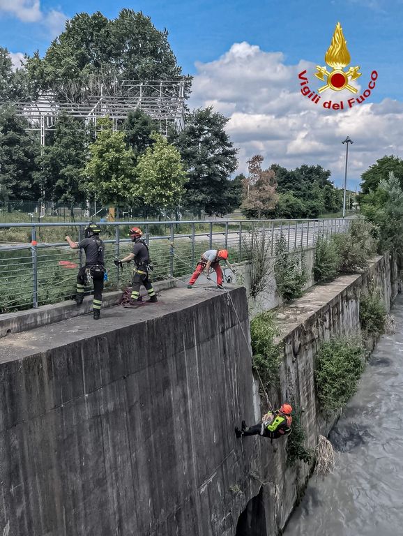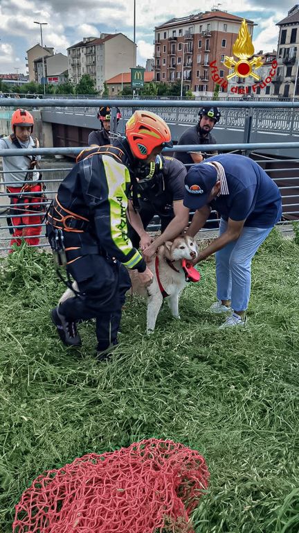 Cane finisce nelle acque della Dora, portato in salvo dai Vigili del fuoco