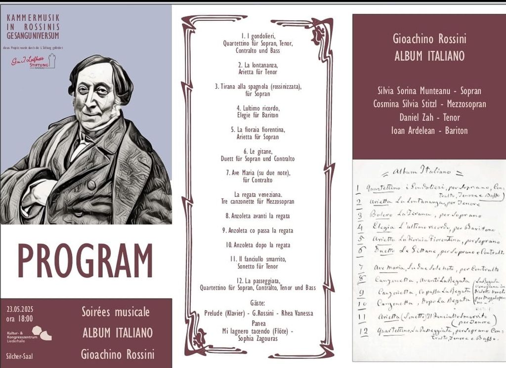 Il Venerdì 23 maggio 2025 ha avuto luogo a Stoccarda, in Germania, il primo evento nell'ambito del progetto di ricerca e creazione artistica "Kammermusik in Rossinis Gesangsuniversum", un progetto interamente finanziato da G. und I. Leifheit Nassau.
