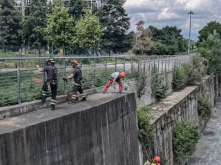Cane finisce nelle acque della Dora, portato in salvo dai Vigili del fuoco
