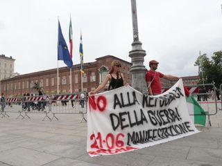 Al termine della cerimonia qualche contestazione contro la guerra e in sostegno alla Palestina. Nella gallery le immagini dell’evento odierno.