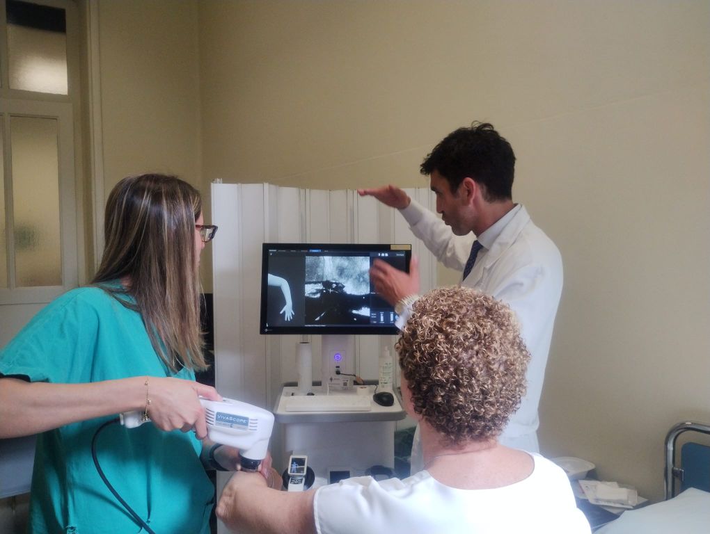 Il nuovo microscopio sarà utilizzato nella ricerca sulla diagnosi precoce dei tumori della pelle, in particolare le neoplasie della pelle del viso: il dispositivo consente la valutazione “in vivo”, quindi senza necessità di eseguire una biopsia cutanea, delle strutture dell’epidermide e del derma superficiale a risoluzione cellulare in tempo reale, attraverso l’osservazione mediante una sonda che viene appoggiata direttamente sulla pelle e la scannerizzazione immediata delle lesioni.