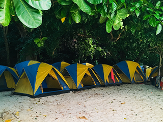 Non ci sono hotel. Non ci sono bar. Chi arriva può scegliere tra pochi bungalow semplici, essenziali, oppure sistemarsi in un campo tendato predisposto direttamente sulla spiaggia, con tende già montate a pochi metri dal mare. Non c’è acqua corrente: per lavarsi e per cucinare si utilizzano vasche di raccolta dell’acqua piovana, gestite con molta parsimonia. La vita qui è spartana per scelta. È vietato introdurre e consumare alcolici: una regola che protegge l’equilibrio di queste isole e ne rafforza il carattere controcorrente.