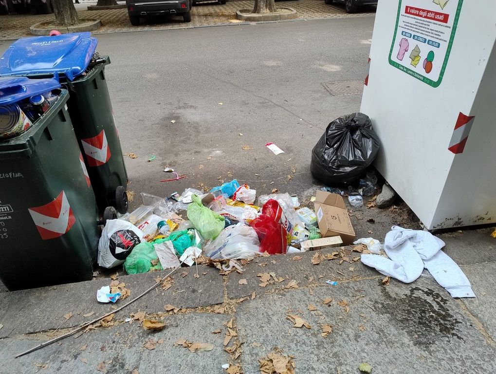 La segnalazione arriva da un lettore che mostra la presenza di cestini ricolmi e immondizia per le strade. Con il caldo arriva il tanfo e vengono attirati topi e volatili