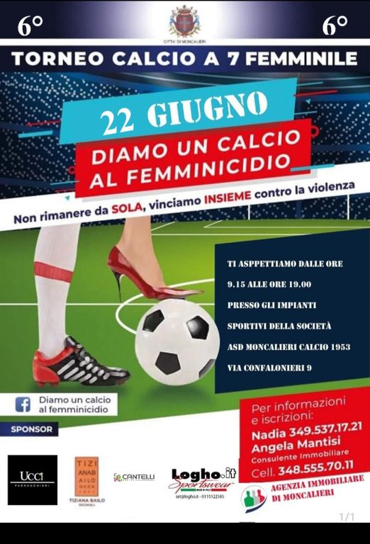 Il Comune di Moncalieri, da sempre sensibile a questi temi, ha rinnovato anche quest'anno il suo impegno insieme alla locale società calcistica, organizzando la sesta edizione di un torneo di calcio a 7 femminile per sensibilizzare sul tema della violenza di genere.