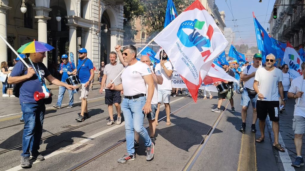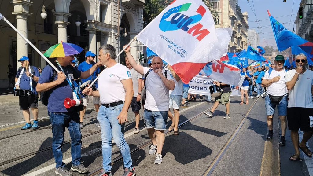 "Nella nostra provincia - chiarisce Luigi Paone, segretario generale torinese della Uilm - sono coinvolte 90 mila persone: 65 mila sono dell' indotto automotive di Stellantis, mentre le restanti sono legate alla Difesa come Leonardo e componentistica". "Dobbiamo riaprire la trattativa -aggiunge - per i lavoratori nelle aziende, ma anche per come noi intendiamo l'industria: serve l'aumento del salario, ma anche la riduzione dell'orario di lavoro per ridurre gli ammortizzatore sociali".