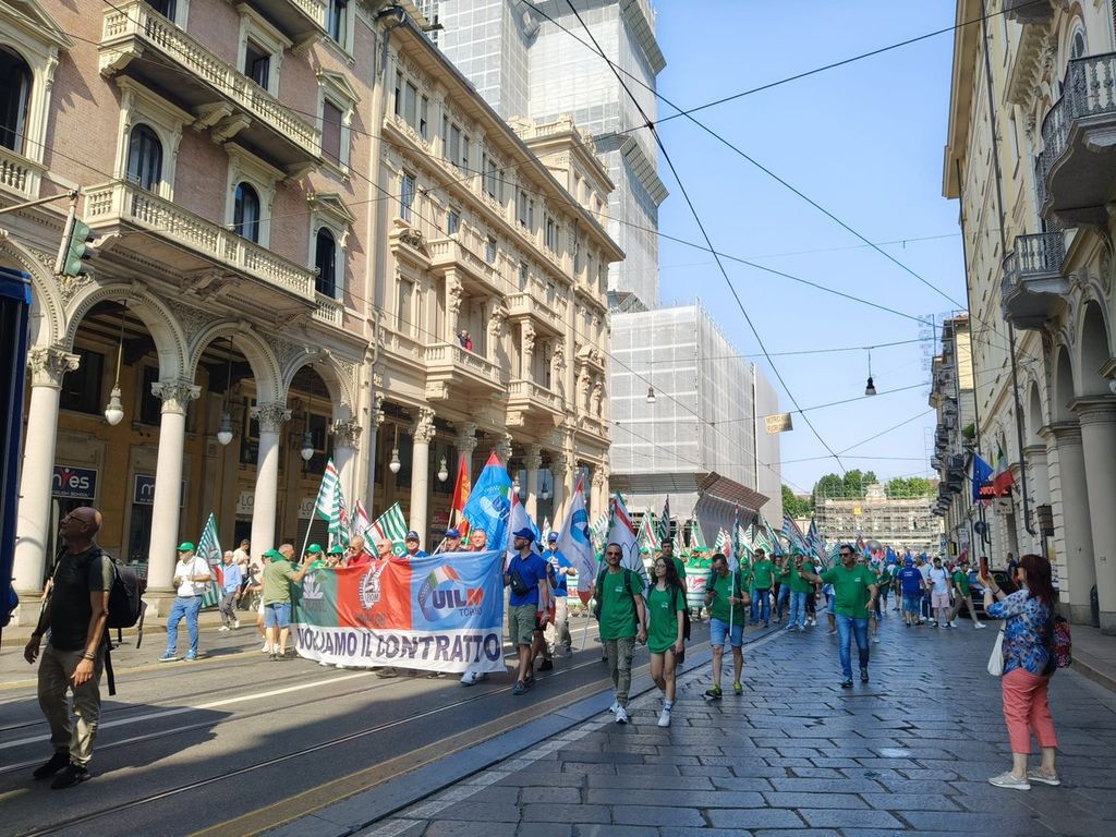 E così oggi i lavoratori di tutto il Piemonte si sono dati appuntamento nel capoluogo piemontese, sfilando in corteo da Porta Susa a piazza Castello. Ed i numeri del comparto sono impressionanti: a livello regionale sono coinvolti 300-350mila operai, che da ben undici mesi attendono un nuovo contratto, per fare fronte anche ad un'inflazione galoppante. La richiesta sul tavolo è un aumento di 280 euro lordi al mese.