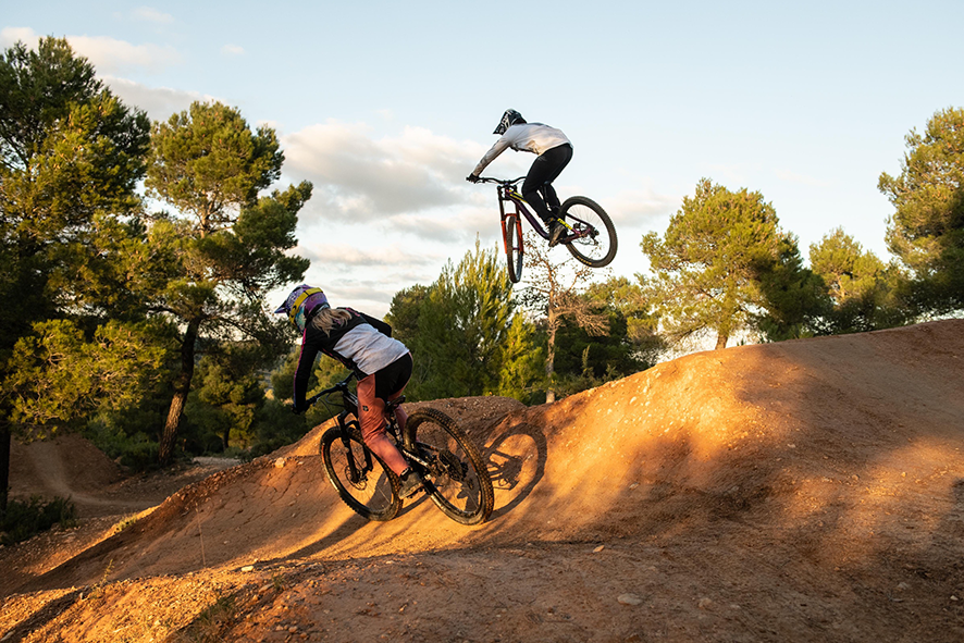 Ci siamo diretti a Valencia e abbiamo raggiunto La Fenasosa Bike Park, celebre per le sue linee di salti e per i percorsi di enduro e downhill. Lì ho affrontato la prova più impegnativa del viaggio: un salto lungo circa 13 metri, quello che in gergo si chiama doppio — si decolla da una rampa e si atterra oltre un “vuoto”, su una seconda rampa. Superare quella paura, dopo anni di stop forzato a causa della malattia, è stato un momento che non dimenticherò mai. È stato come ritrovare me stessa. Per me la bici è sempre stata una terapia, un mezzo per esprimere la mia forza interiore e per trasformare la sofferenza in energia positiva.