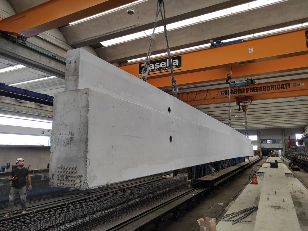 Negli ultimi anni, Prefabbricati Guerrini ha realizzato elementi fino a 36 metri di lunghezza e pilastri alti oltre 31 metri, pensati per rispondere alle necessità di impianti produttivi, centri logistici e strutture sportive.