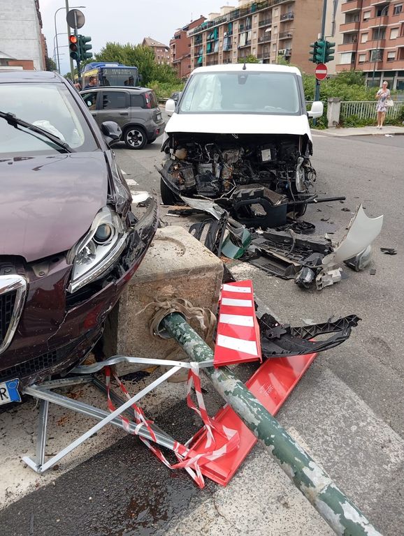 Incidente tra due auto all'incrocio, abbattuto anche un semaforo