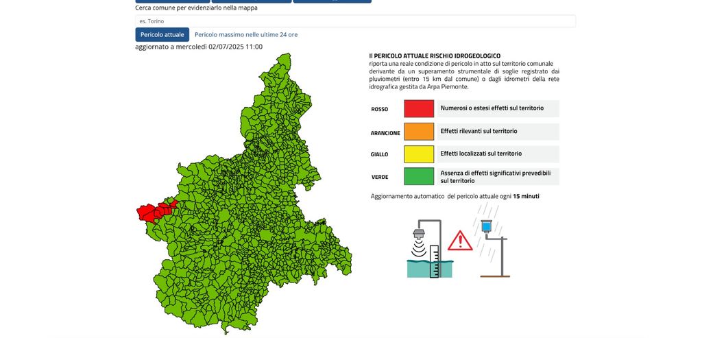 Bardonecchia rimane sotto la lente d'ingrandimento: anche oggi è l'unica zona rossa per il rischio idrogeologico
