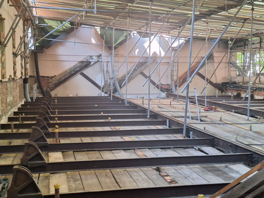 Al momento, i lavori hanno riguardato le prime demolizioni. Il tetto è stato completamente rimosso per consentire la realizzazione di una struttura più solida e moderna, pur mantenendo le travi originali dell’Ottocento. Il nuovo impianto, infatti, non sarà visibile esternamente: fungerà da supporto tecnico, integrandosi alla copertura storica per conservarne l’identità architettonica.
