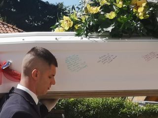 La bara bianca firmata da amici e conoscenti con l'ultimo messaggio inviato, prima della tragedia: "Sistemo le cose e arrivo"