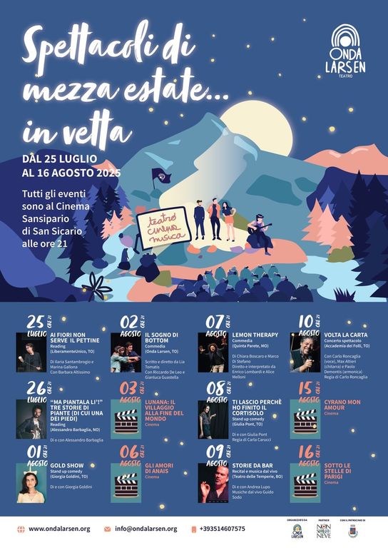 Tra le iniziative culturali, spicca SME! – Spettacoli di Mezza Estate…in Vetta!, una rassegna che dal giugno ad agosto offrirà eventi teatrali, cinema e laboratori curati dall’Associazione Culturale Onda Larsen. Presso il teatro San Sipario e all’aperto, saranno proposti spettacoli che intratterranno sia i residenti che i visitatori, portando vita e cultura anche durante l’estate e la Galleria Umberto Benappi presenterà “Esposta. Arte ad Alta Quota”, con mostre di arte contemporanea che arricchiranno l’offerta culturale.