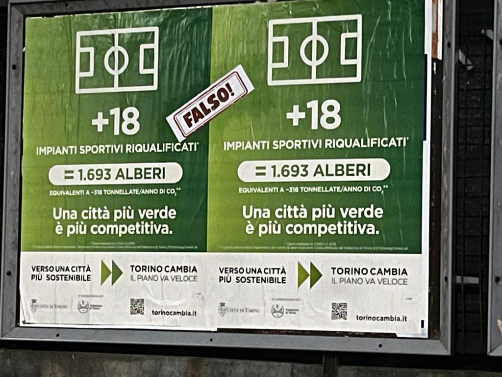 "I manifesti - si legge nella nota stampa - celebrano la messa a dimora di 31.700 alberi tra il 2022 e il 2025, che avrebbe ridotto di 5.960 tonnellate/anno le emissioni di CO2. Inoltre riportano assurde equivalenze tra piste ciclabili realizzate e riqualificazione di impianti sportivi da una parte e alberi dall’altra. Secondo l’Amministrazione «grazie al lavoro congiunto tra Città e Politecnico è stato stimato che i progetti attualmente in corso produrranno una riduzione di emissioni climalteranti di oltre 110mila tonnellate di CO2 l’anno, equivalenti alla capacità di assorbimento di circa 600mila alberi di alto fusto.» Ciò che questa Giunta sta riducendo è il patrimonio arboreo cittadino, con progetti che comportano abbattimenti di centinaia di esemplari sani (corso Umbria e corso Belgio, parco del Meisino, Pellerina e anche Artiglieri da Montagna con il progetto del supermercato Esselunga ereditato dalle amministrazioni precedenti e non archiviato). Ora la Giunta usa gli alberi come unità di misura per vantarsi di una presunta riduzione della CO2."